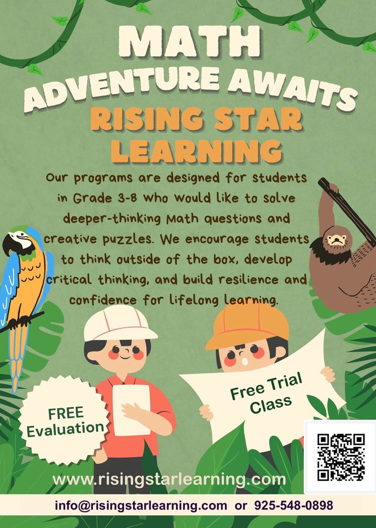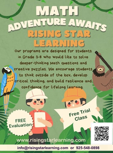 Mrs. Lang of Rising Star Learning is a dedicated, passionate, extremely patient math tutor who helped my daughter back on track in her 7th grade advance math placement by strengthening her math skills, and helping her regain confidence, interest & love for math that lasts a lifetime! Parents whom I referred Mrs. Lang were all amazed at their students' progresses & appreciated Mrs. Lang. I highly recommend Rising Star Learning programs. -- P. Yeung